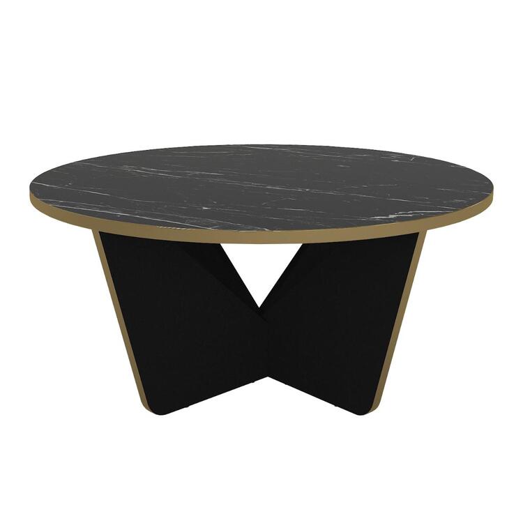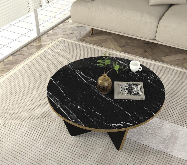 Konferenční stolek je vyroben z kvalitního materiálu LTD o tloušťce 18 mm, což zaručuje jeho pevnost a dlouhou životnost. Jeho elegantní kombinace černé barvy a mramorového vzhledu přidá vašemu obývacímu pokoji nádech luxusu a sofistikovanosti. Kulatý tvar stolku je ideální pro moderní interiéry, kde se stane středobodem vašeho obývacího prostoru.