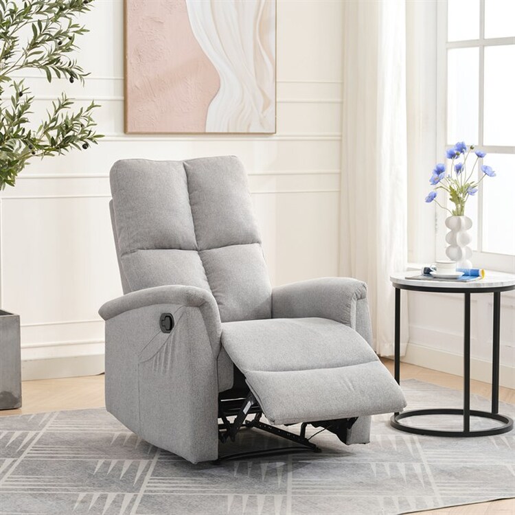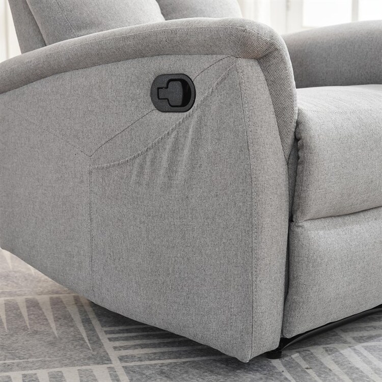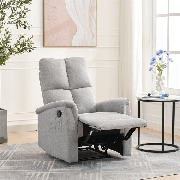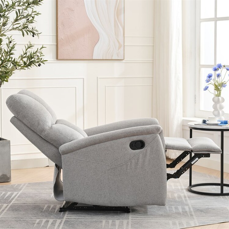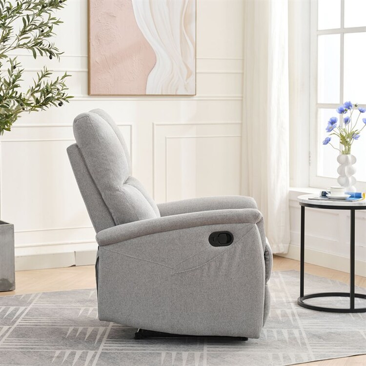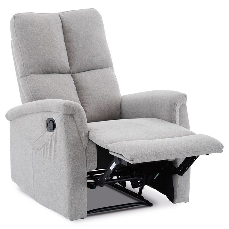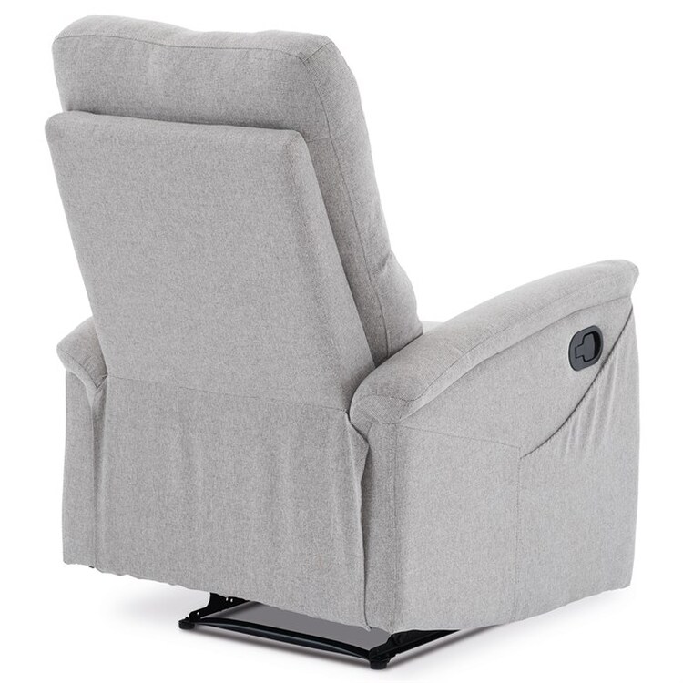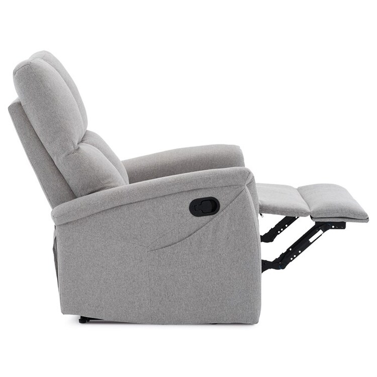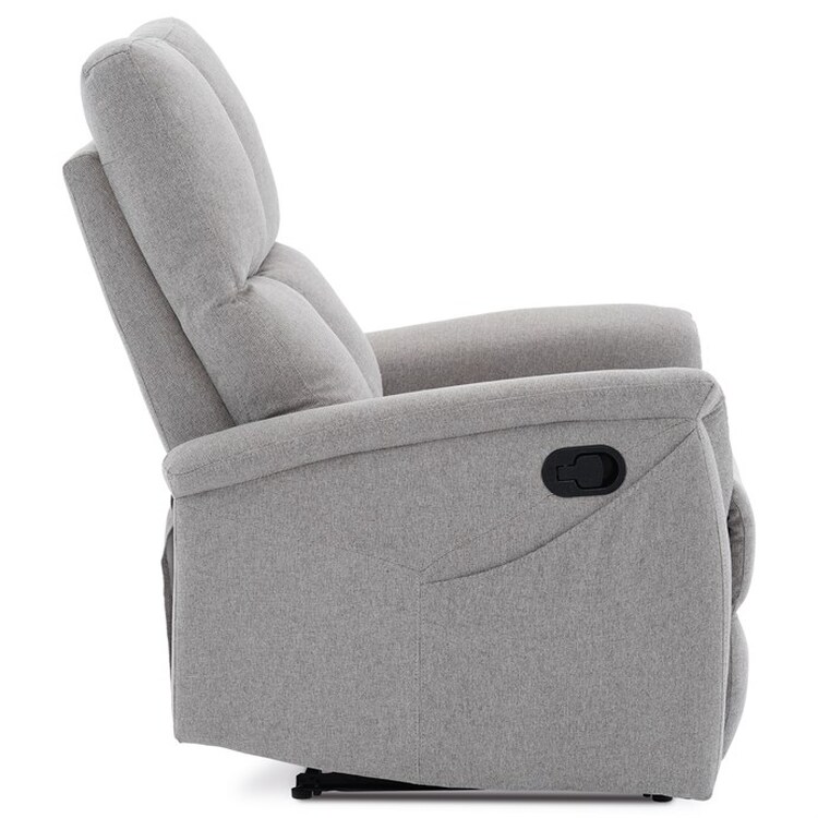 Polohovací křeslo, světle šedé barvy, s manuálním ovládáním. Toto komfortní křeslo je vybaveno postranní pákou, která umožňuje snadné nastavení sklonu zadní opěrky a zvednutí podnožky.Na boku křesla je praktická kapsa pro uložení drobností, jako jsou časopisy nebo dálkový ovladač. Křeslo je navrženo pro maximální pohodlí a ergonomii, poskytuje vynikající podporu zad a relaxaci.Ideální pro každodenní odpočinek doma.