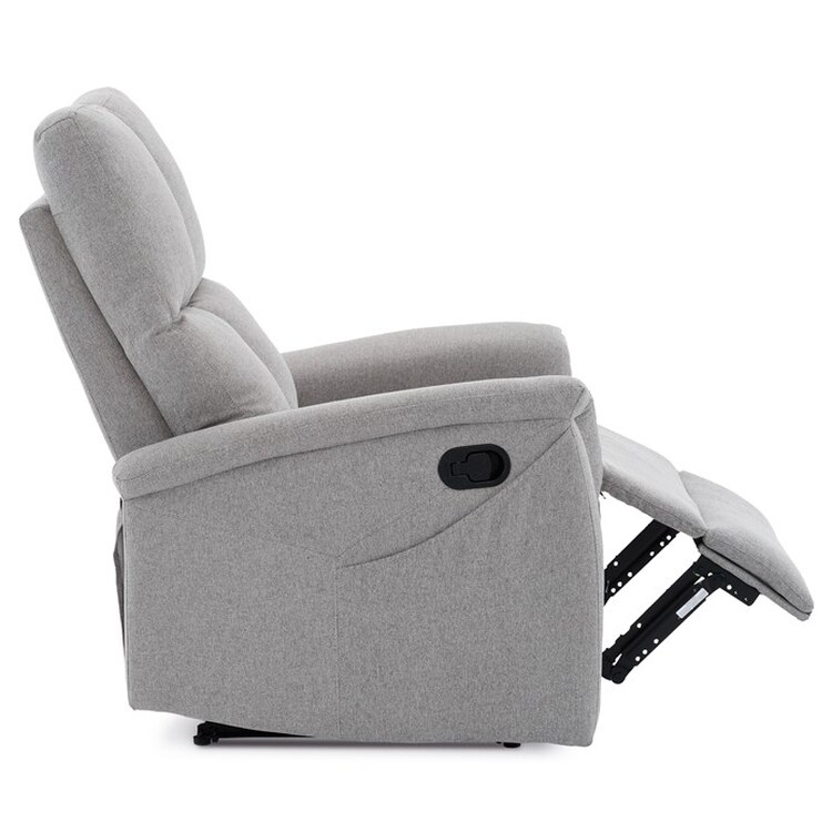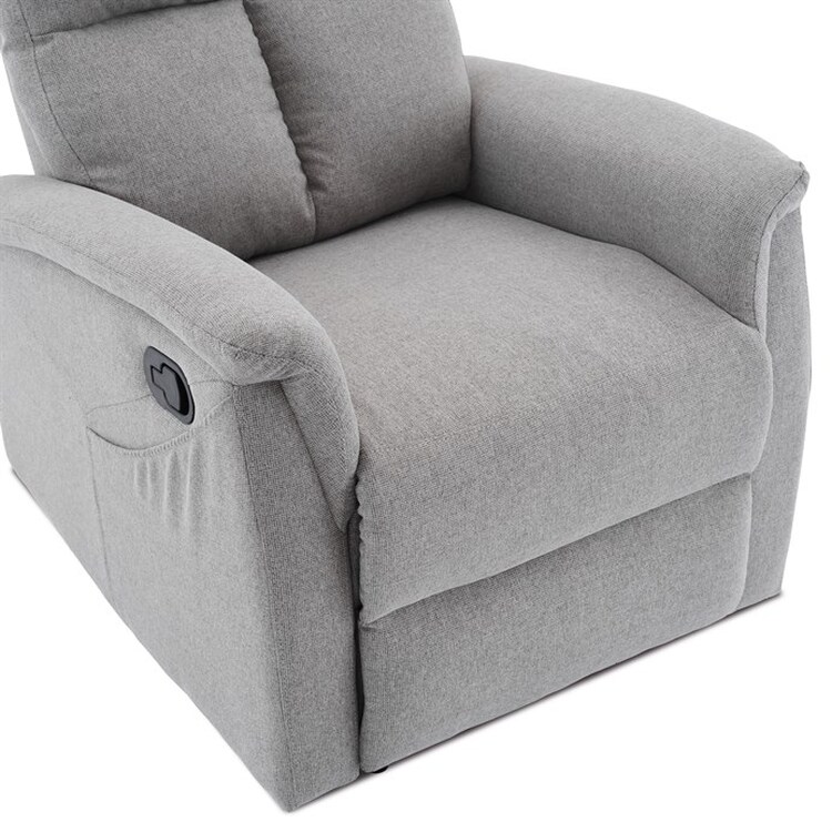 Polohovací křeslo, světle šedé barvy, s manuálním ovládáním. Toto komfortní křeslo je vybaveno postranní pákou, která umožňuje snadné nastavení sklonu zadní opěrky a zvednutí podnožky.Na boku křesla je praktická kapsa pro uložení drobností, jako jsou časopisy nebo dálkový ovladač. Křeslo... více informací o zboží