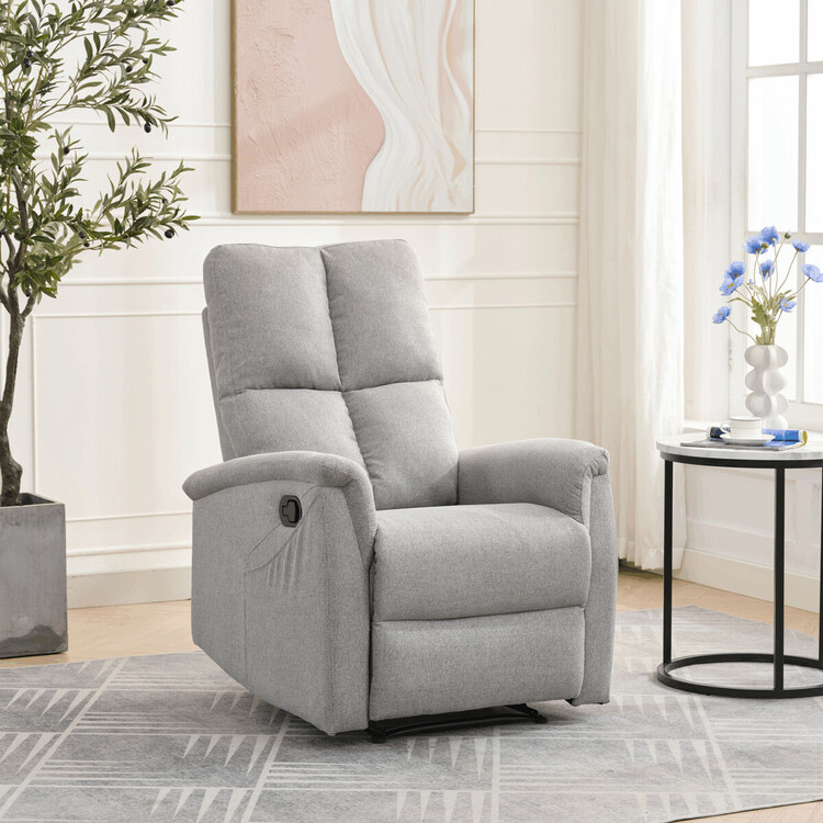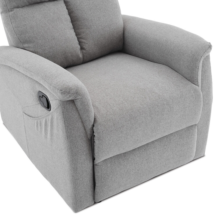Polohovací křeslo, světle šedé barvy, s manuálním ovládáním. Toto komfortní křeslo je vybaveno postranní pákou, která umožňuje snadné zvednutí podnožky.Na boku křesla je praktická kapsa pro uložení drobností, jako jsou časopisy, dálkový ovladač nebo mobilní telefon. Křeslo je navrženo... více informací o zboží