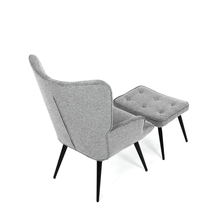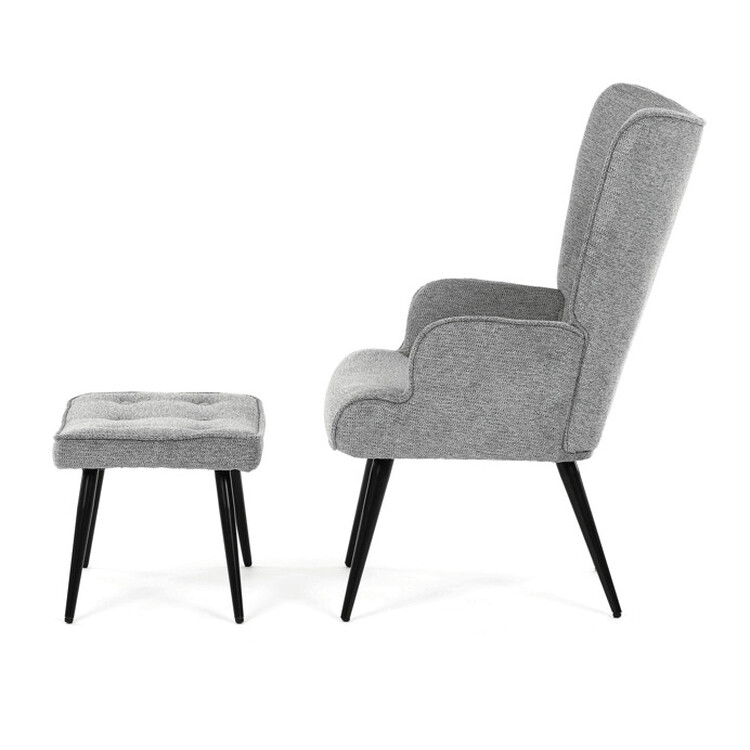 Relaxační křeslo s podnožkou v šedé barvě je potažené vodoodpudivou prémiovou látkou, která usnadňuje údržbu a zvyšuje odolnost proti polití. Pevná kovová podnož v černém provedení zajišťuje stabilitu a dlouhou životnost. Křeslo disponuje pohodlnými čalouněnými područkami a ergonomicky tvarovaným opěradlem s decentním prošitím, které podporuje relaxaci a komfort při sezení. Součástí je také samostatný taburet se stejným materiálem a designem, který umožňuje pohodlné opření nohou. Tento set je vhodný pro odpočinek v obývacím pokoji či pracovně, kde oceníte kombinaci funkčnosti a moderního vzhledu.Taburet je o šířce 48cm, hloubce 38cm a výšce 36cm.