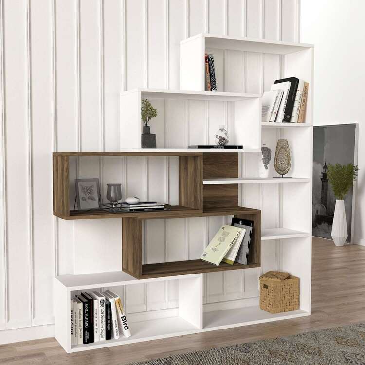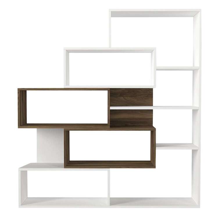 Regál se pyšní svým moderním designem a kombinací bílé a ořechové barvy, která přináší do interiéru eleganci a styl. Čtyři pevné police poskytují dostatek úložného prostoru pro vaše knihy, dekorace či kancelářské potřeby. Robustní LTD materiál o tloušťce 18 mm zajišťuje dlouhou životnost a stabilitu tohoto regálu.
