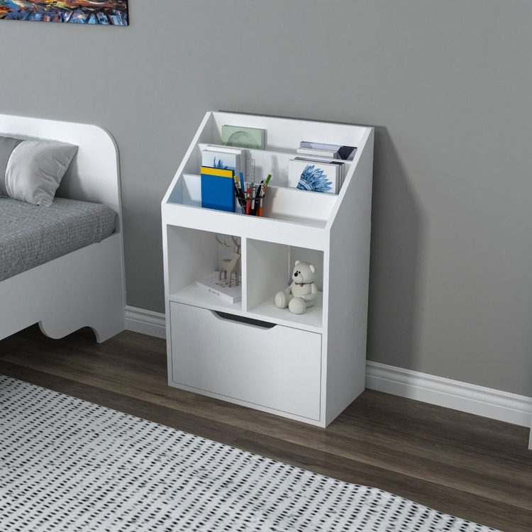 Knihovna je ideální volbou pro obývací pokoj nebo dětský pokoj. Díky svému kompaktnímu rozměru a praktickému designu nabízí dostatek prostoru pro knihy, dekorace nebo hračky. Jednoduchý a moderní vzhled zaručuje, že zapadne do každého interiéru.