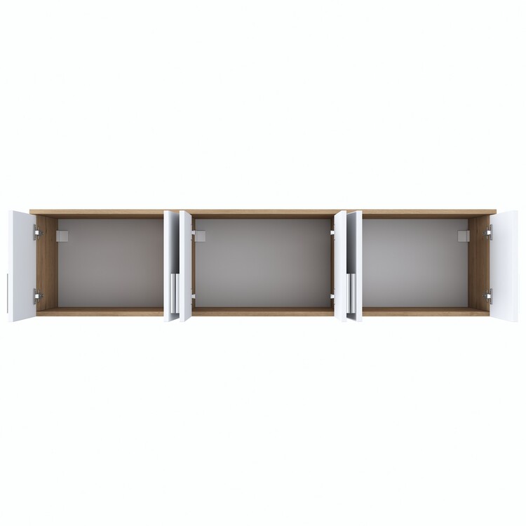 Komoda je vybavena šesti plnými dvířky, která poskytují dostatek prostoru pro uložení oblečení, dekorací nebo jiných nezbytností. Díky odolným materiálům, jako je melamin a VT laminát, je snadno udržovatelná a dlouhodobě odolná proti opotřebení.