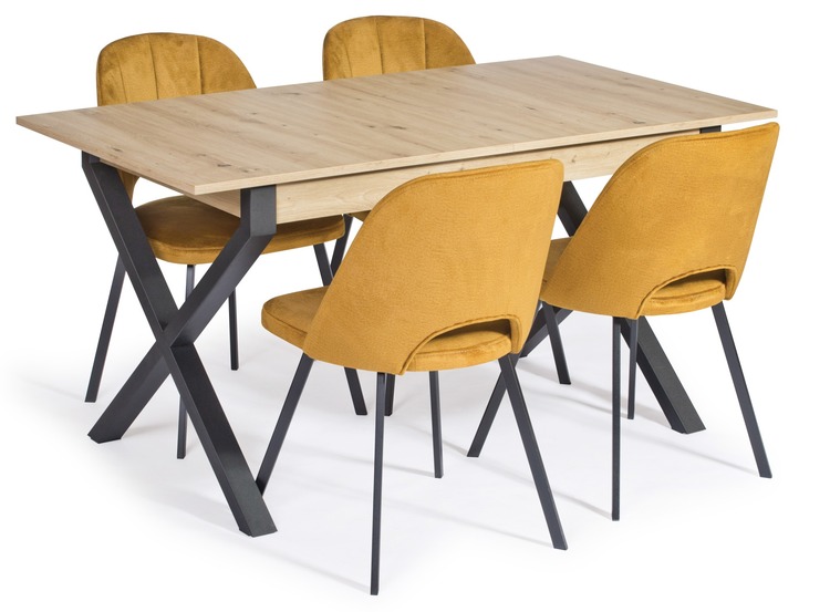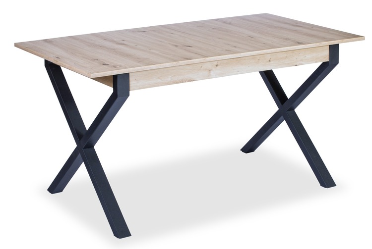 Moderní rozkládací stůl s černou kovovou podnoží.