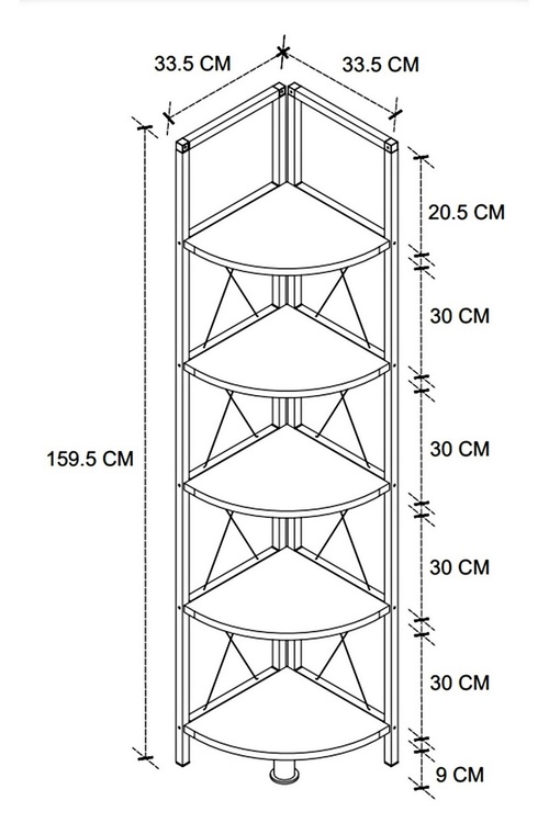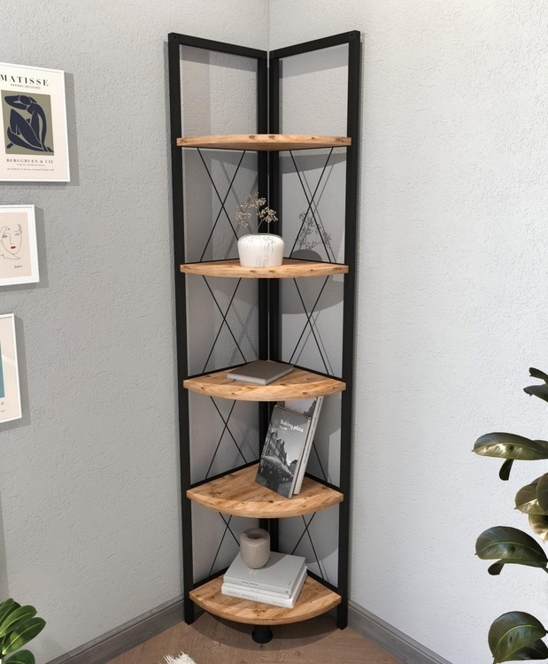 Kovový rohový regál – knihovna v moderním stylu, police jsou vyrobeny z kvalitní desky LTD v barevném provedení borovice. Tloušťka polic – 18 mm. Konstrukce je natřená elektrostatickou práškovou barvou odolnou vůči rzi a poškrábání. Dodáváme v demontovaném stavu.CASA 36040