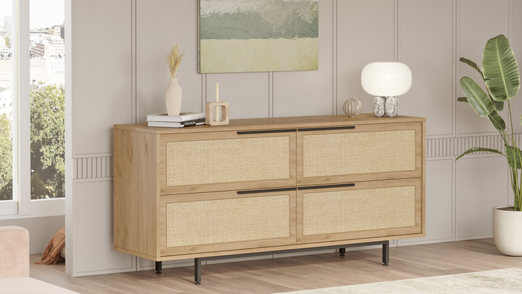 ROSARITO čtyřdveřová komoda, sepet/jutový vzor