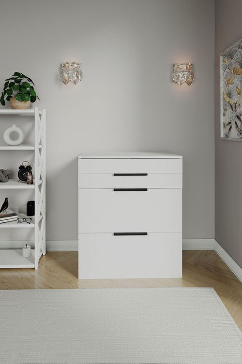 Elegantní toaletní stolek je praktický a stylový doplněk do každé ložnice. Vyroben z kvalitního LTD materiálu tloušťky 16 mm v moderním provedení bílá Nyphea Alba s černými úchyty, kombinuje funkčnost a design.