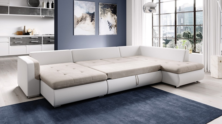 Praktická prostorná celočalouněná rohová sedačka do tvaru U. Netradiční a velmi moderní vzhled. Sedačka obsahuje prostor na příležitostní spaní. Po rozložení je spací plocha 285 × 135 cm. Rozklad je snadný, vysune se vozík s matrací do přední části. Pohodlné sezení zaručují vlnovcové pružiny... více informací o zboží
