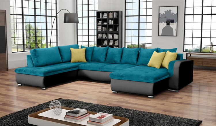 Praktická prostorná celočalouněná rohová sedačka do tvaru U. Netradiční a velmi moderní vzhled. Sedačka obsahuje prostor na příležitostní spaní. Po rozložení je spací plocha 285 × 135 cm. Rozklad je snadný, vysune se vozík s matrací do přední části. Pohodlné sezení zaručují vlnovcové pružiny spolu s PUR pěnou ( T30 ). Výška sedu je 41 cm, hloubka sedu 48 cm ( bez polštářů 63 cm ),výška sedačky bez polštářů 65 cm. Nožky jsou kovové pochromované. Barevné provedení – korpus ekokůže Madryt 1100, sedací a opěrná část látka Orinoco 85 a dekorační polštářky Orinoco 40.CASA 41005