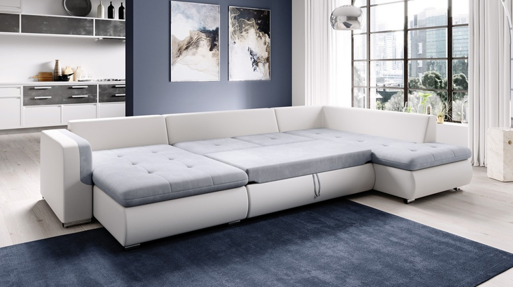 Praktická prostorná celočalouněná rohová sedačka do tvaru U. Netradiční a velmi moderní vzhled. Sedačka obsahuje prostor na příležitostní spaní. Po rozložení je spací plocha 285 × 135 cm. Rozklad je snadný, vysune se vozík s matrací do přední části. Pohodlné sezení zaručují vlnovcové pružiny... více informací o zboží
