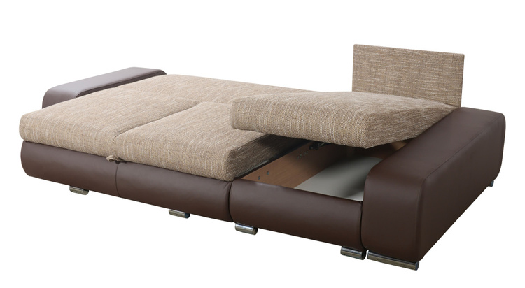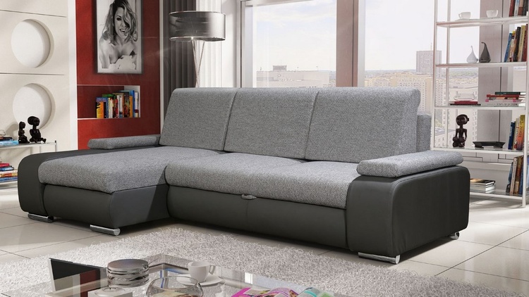 Praktická rohová sedačka. Netradiční a velmi moderní vzhled. Sedačka obsahuje 2 úložné prostory a prostor na příležitostní spaní. Po rozložení je spací plocha 203 × 140 cm. Rozklad je snadný, vysune se matrace do přední části, zadní část se sklopí. Výška sedu je 43 cm, šířka područí 26 cm. Pohodlné sezení zaručují bonelové pružiny spolu s PUR pěnou. Sedačka je univerzální, dá se složit na obě strany. Barevné provedení – ekokůže Madryt 195 tmavě šedá a látka Inari 91 světle šedá.CASA 41013