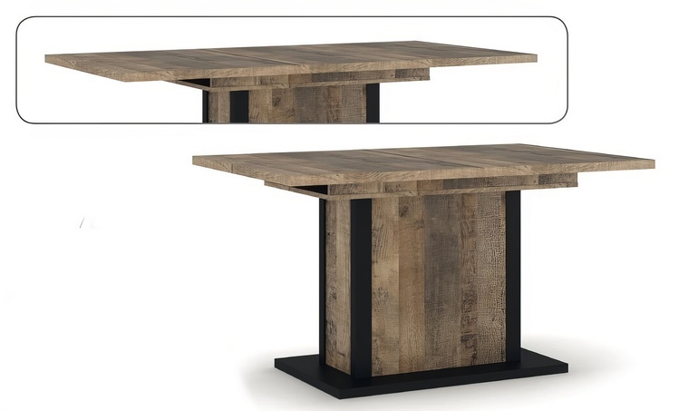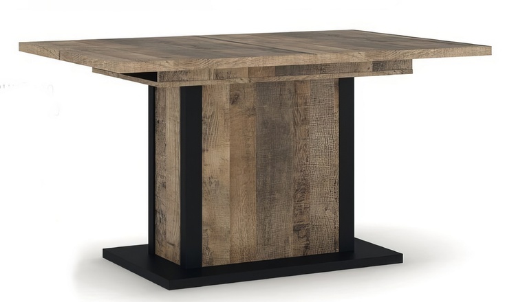 Rozkládací jídelní stůl 140 v industriálním stylu je vyroben z LTD desky v barevném provedení dub grange. Stabilní konstrukce s nožkama je z desky MDF černé barvy. Velikost jídelní plochy po rozložení je 180 × 90 cm. Nabídka komponentů této sektorové řady umožňuje sestavit si nábytek dle... více informací o zboží