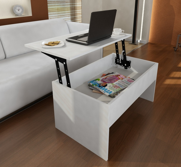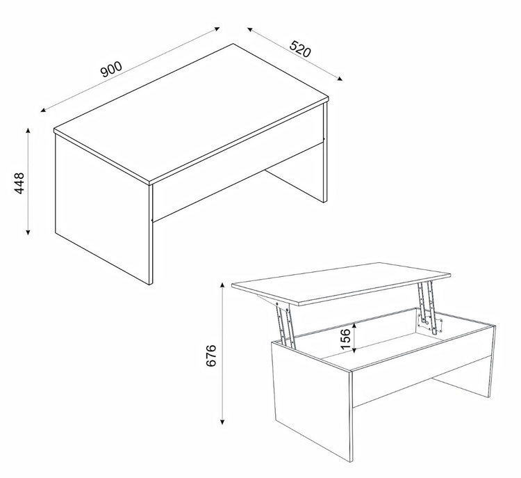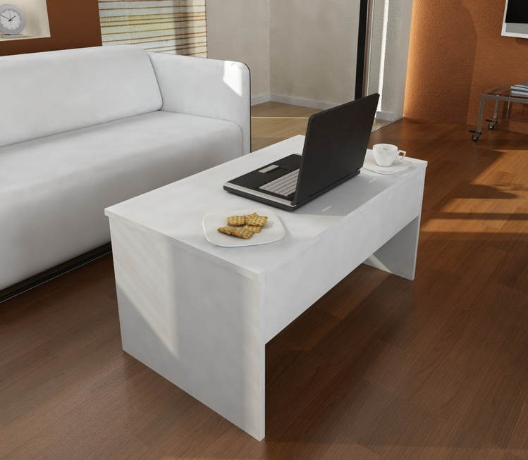 Rozkládací konferenční stolek s úložným prostorem je vyroben z kvalitního lamina o tl.18 mm hraněné PVC páskou, odolného proti poškrábání v barvě matná bílá. Horní deska stolu se dá vyzdvihnout, a je možné takto stůl používat i jako pracovní. Dodáváme v demontovaném stavu.CASA 28001