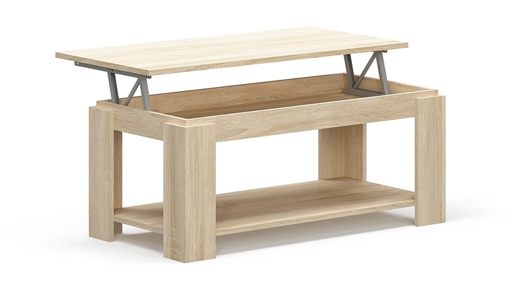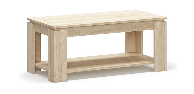 Rozkládací konferenční stolek s úložným prostorem je vyroben z kvalitního lamina odolného proti poškrábání v barvě dub sonoma. Horní deska stolu se dá vyzdvihnout, a je možné takto stůl používat i jako pracovní či jídelní. Dodáváme v demontovaném stavu.CASA 97038