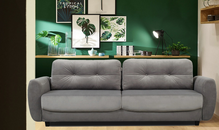 Praktická celočalouněná pohovka. Netradiční a velmi moderní vzhled. Pohovka obsahuje úložný prostor a prostor na příležitostní spaní. Po rozložení je spací plocha 200 × 147 cm. Rozklad je snadný pomocí automatu a sklopením zadní části. Pohodlné sezení zaručují vlnovcové a profilované pružiny spolu s visoceelastickou PUR pěnou, opěrné polštáře jsou na volno. Nožky jsou dřevěné v barvě wenge. Barevné provedení – látka Riviera 91.CASA 17013