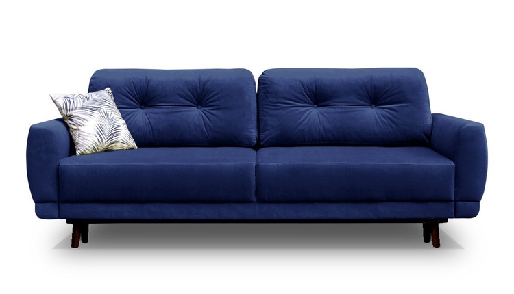 Praktická celočalouněná pohovka ve skandinávském stylu. Pohovka obsahuje úložný prostor a prostor na příležitostní spaní. Po rozložení je spací plocha 200 × 142 cm. Rozklad je snadný vysunutím sedací části a sklopením zadní opěrné části. Pohodlné sezení zaručují vlnovcové a profilované pružiny spolu s vysoceelastickou PUR pěnou, pružiny jsou umístěny v sedací i opěrné části. Opěrné polštáře mají dekorační prošití knoflíky a jsou na volno. Dekorační polštářek je součástí – barevné provedení je látka Botanical 80. Nožky jsou v barvě černé. Barevné provedení pohovky je Riviera 81 – modrá tmavá. (viz potah látky na menším obrázku)CASA 17014