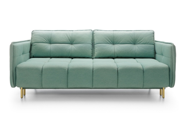 Praktická celočalouněná pohovka v elegantním provedení. Pohovka obsahuje úložný prostor a prostor na příležitostní spaní. Po rozložení je spací plocha 200 × 140 cm. Rozklad je snadný vysunutím sedací části a sklopením zadní opěrné části. Pohodlné sezení zaručují vlnovcové pružiny spolu s vysoceelastickou PUR pěnou, opěrné polštáře jsou na volno. Nožky jsou v barvě zlaté. Barevné provedení pohovky je látka Castek 34 – zelená světlá. (viz potah látky na menším obrázku)CASA 17007