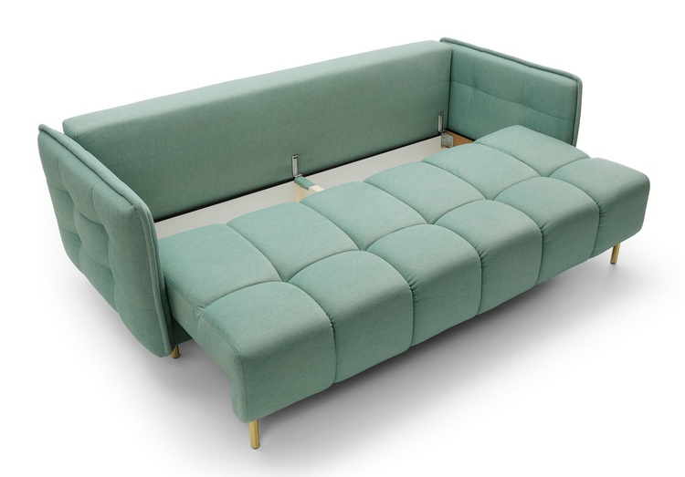 Praktická celočalouněná pohovka v elegantním provedení. Pohovka obsahuje úložný prostor a prostor na příležitostní spaní. Po rozložení je spací plocha 200 × 140 cm. Rozklad je snadný vysunutím sedací části a sklopením zadní opěrné části. Pohodlné sezení zaručují vlnovcové pružiny spolu s vysoceelastickou PUR pěnou, opěrné polštáře jsou na volno. Nožky jsou v barvě zlaté. Barevné provedení pohovky je látka Castel 03 – béžová. (viz potah látky na menším obrázku)CASA 17007