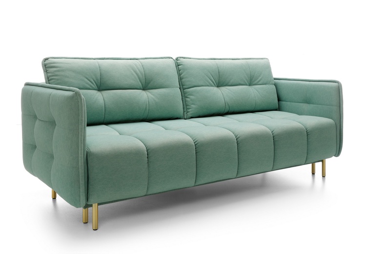 Praktická celočalouněná pohovka v elegantním provedení. Pohovka obsahuje úložný prostor a prostor na příležitostní spaní. Po rozložení je spací plocha 200 × 140 cm. Rozklad je snadný vysunutím sedací části a sklopením zadní opěrné části. Pohodlné sezení zaručují vlnovcové pružiny spolu s vysoceelastickou PUR pěnou, opěrné polštáře jsou na volno. Nožky jsou v barvě zlaté. Barevné provedení pohovky je látka Castel 79 – modrá tmavá. (viz potah látky na menším obrázku)CASA 17007