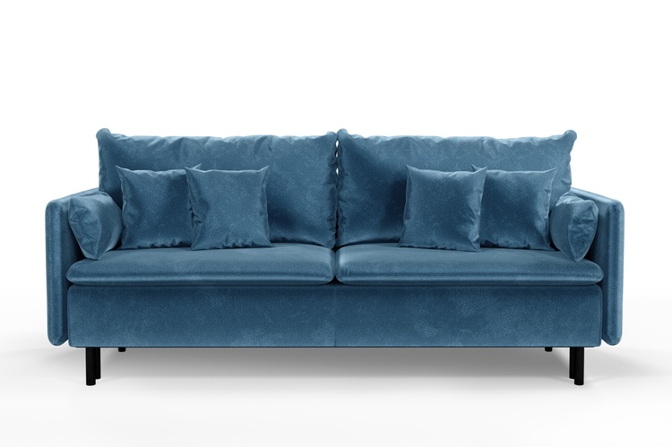 Praktická celočalouněná pohovka v moderním provedení. Pohovka obsahuje úložný prostor a prostor na příležitostní spaní. Po rozložení je spací plocha 200 × 140 cm. Rozklad je snadný vysunutím sedací části dopředu a sklopením zadní opěrné části. Pohodlné sezení zaručují vlnovcové a profilované pružiny spolu s vysoceelastickou PUR pěnou. Pružiny jsou umístěny v sedací i opěrné části. Nožky jsou v barvě černé. Barevné provedení pohovky je látka Cloud 75 – modrá tmavá. (viz potah látky na menším obrázku)CASA 17003
