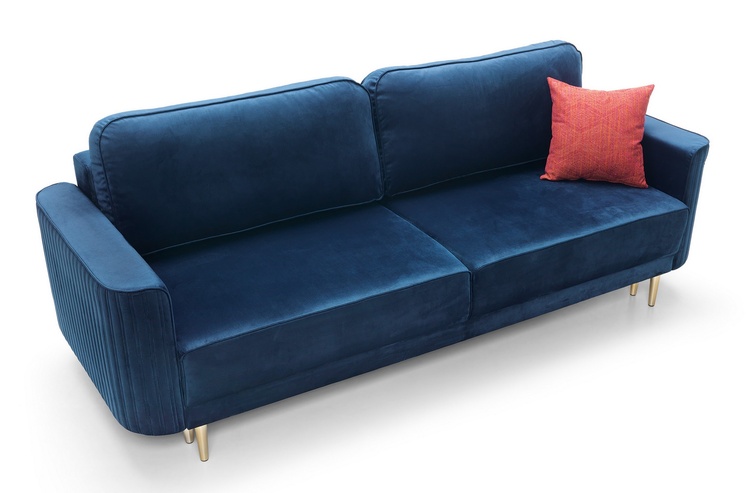 Praktická celočalouněná pohovka ve skandinávském stylu. Pohovka obsahuje úložný prostor a prostor na příležitostní spaní. Po rozložení je spací plocha 200 × 140 cm. Rozklad je snadný vysunutím sedací části a sklopením zadní opěrné části. Pohodlné sezení zaručují vlnovcové a profilované pružiny spolu s vysoceelastickou PUR pěnou. Opěrné polštáře jsou na volno. Dekorační polštářek stejné barvy jako potah je součástí. Barevné provedení pohovky Genova 606 – modrá, provedení nožek je ve zlaté. (viz potah látky na menším obrázku)CASA 17012