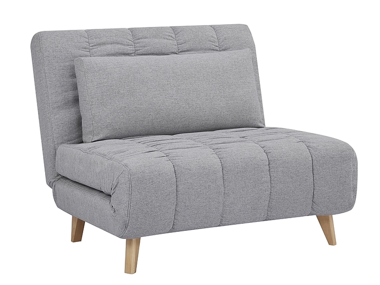 Rozkládací pohovka originálního vzhledu. Ve složeném stavu plní funkci pohovky a tak je vhodná do obývacího pokoje či malých obytných prostor, kde rádi využijete možnost posezení přes den a spaní na noc. Konstrukce je potažena látkou v šedé barvě (tap. 137),nožky jsou ze dřeva v barvě buk.... více informací o zboží