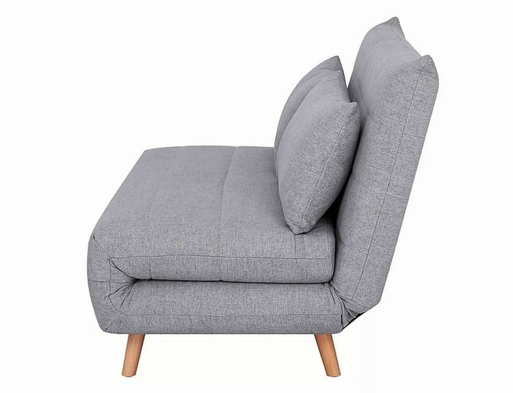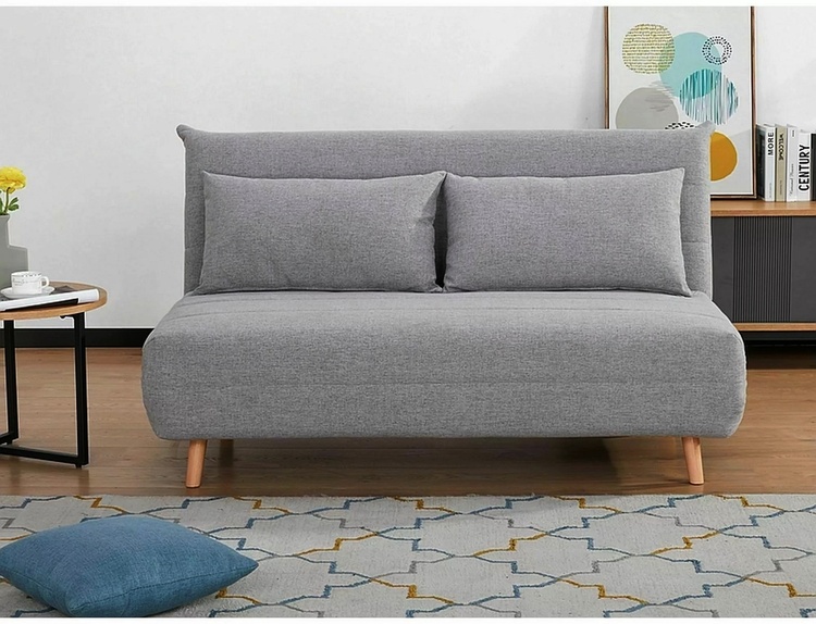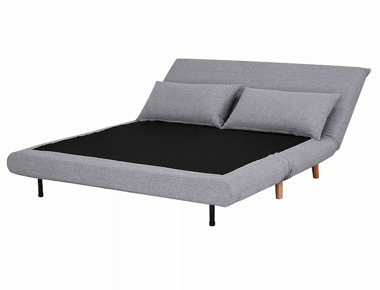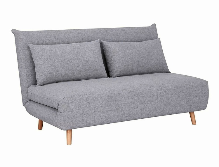 Rozkládací pohovka originálního vzhledu. Ve složeném stavu plní funkci pohovky, po rozložení slouží jako pohodlná postel. Konstrukce je potažena látkou v šedé barvě (137),nožky jsou ze dřeva v barvě buk. Plocha na spaní po rozložení je 148 × 193 cm. Hloubka sedáku ve složeném stavu je 50 cm,... více informací o zboží