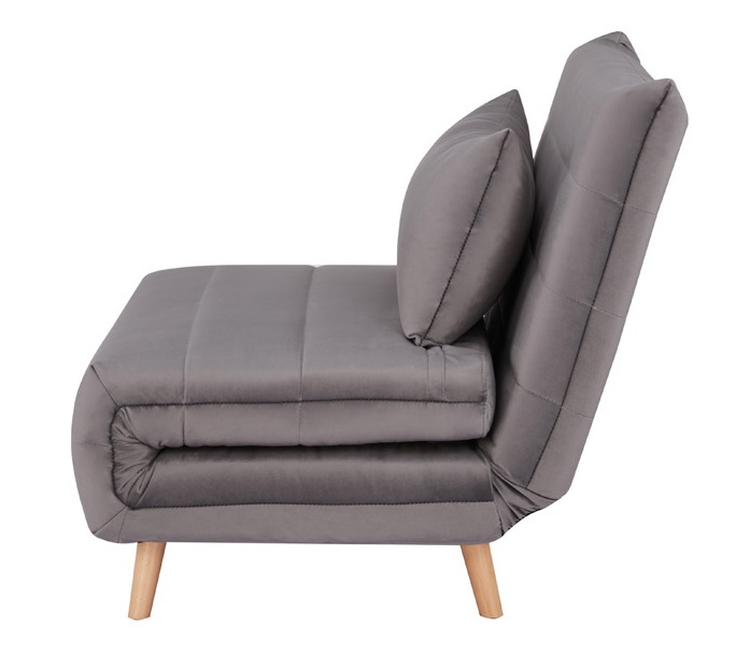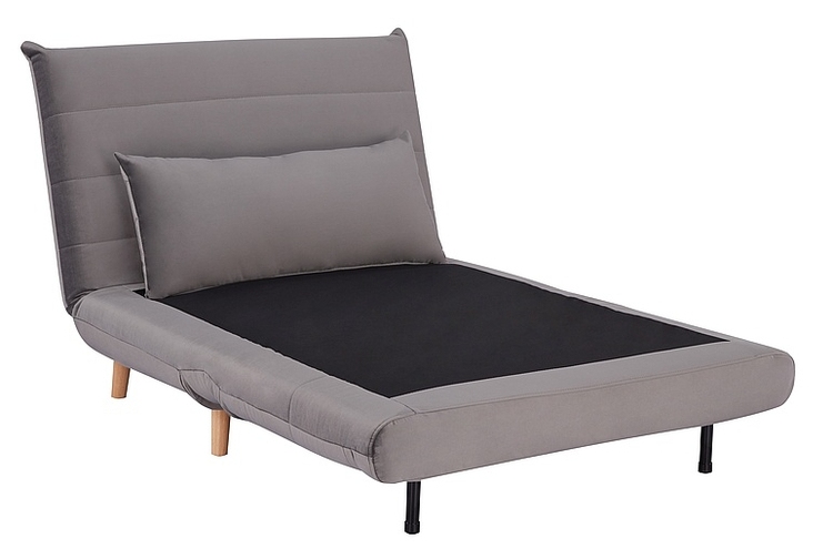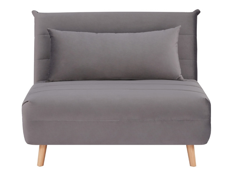 Rozkládací pohovka originálního vzhledu. Ve složeném stavu plní funkci pohovky a tak je vhodná do obývacího pokoje či malých obytných prostor, kde rádi využijete možnost posezení přes den a spaní na noc. Konstrukce je potažena látkou aksamit v šedé barvě (velvet 139),nožky jsou ze dřeva v barvě buk. Plocha na spaní po rozložení je 105 × 190 cm. Hloubka sedáku ve složeném stavu je 63 cm, výška 39 cm. Dodáváme v demontovaném stavu.CASA 11044