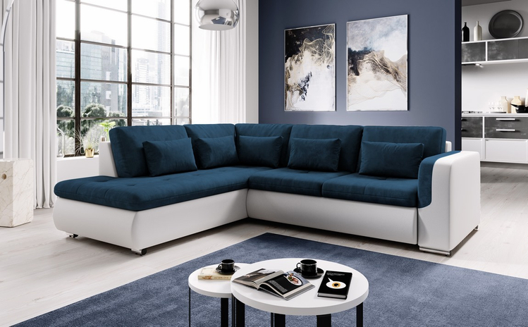 Praktická prostorná celočalouněná rohová sedačka do tvaru L. Netradiční a velmi moderní vzhled. Sedačka obsahuje prostor na příležitostní spaní. Po rozložení je spací plocha 195 × 134 cm. Rozklad je snadný, vysune se vozík s matrací do přední části. Pohodlné sezení zaručují vlnovcové pružiny spolu s PUR pěnou ( T30 ). Výška sedu je 42 cm, hloubka sedu 48 cm, výška sedačky bez polštářů 67 cm. Nožky jsou kovové pochromované. Barevné provedení – korpus ekokůže Madryt 120, sedací a opěrná část látka Kronos 9, dekorační polštářky Kronos 9.CASA 41005