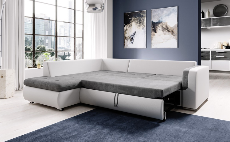 Praktická prostorná celočalouněná rohová sedačka do tvaru L. Netradiční a velmi moderní vzhled. Sedačka obsahuje prostor na příležitostní spaní. Po rozložení je spací plocha 195 × 134 cm. Rozklad je snadný, vysune se vozík s matrací do přední části. Pohodlné sezení zaručují vlnovcové pružiny... více informací o zboží