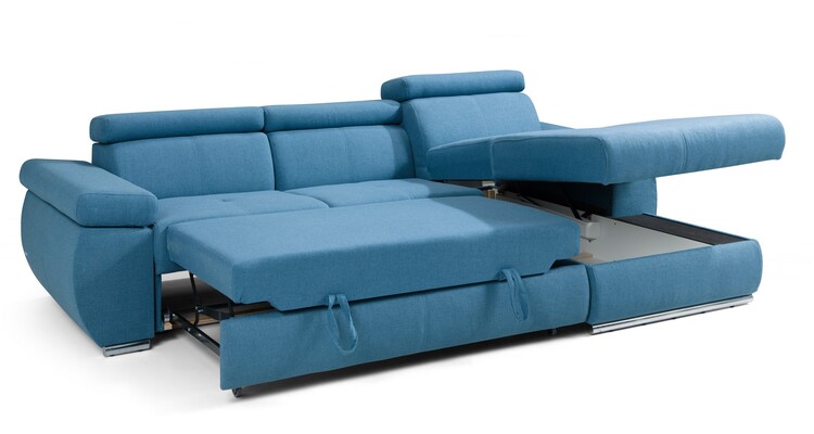 Praktická celočalouněná rohová sedačka s dekoračním prošíváním a regulovatelnými opěrkami hlavy a loktů. Sedačka obsahuje úložný prostor a prostor na příležitostní spaní. Po rozložení je spací plocha 217 × 130 cm. Rozklad je snadný vysunutím zásuvky pod sedací částí a vytažením ložné plochy... více informací o zboží