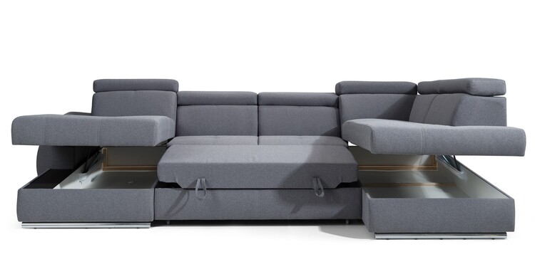 Praktická celočalouněná rohová sedačka tvaru U s dekoračním prošíváním a regulovatelnými opěrkami hlavy a loktů. Sedačka obsahuje 2 úložné prostory a prostor na příležitostní spaní. Po rozložení je spací plocha 274 × 130 cm. Hloubka kratšího otomanu je 170 cm. Rozklad je snadný vysunutím... více informací o zboží