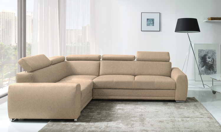 Praktická celočalouněná rohová sedačka s rohem nalevo. Netradiční a velmi moderní vzhled. Sedačka obsahuje úložný prostor a prostor na příležitostní spaní. Po rozložení je spací plocha 205 × 130 cm. Rozklad je snadný pomocí automatu. Pohodlné sezení zaručují vlnovcové a profilované pružiny spolu s visoceelastickou PUR pěnou. Nožky jsou kovové. Velkou výhodou sedačky jsou 5 polohovatelných opěrek na hlavu pro větší pohodlí. Po zvednutí zádové opěrky je výška sedací soupravy 90 cm. Barevné provedení – látka Element 06. Můžete si vybrat výběr rohu v naší nabídce.CASA 17028