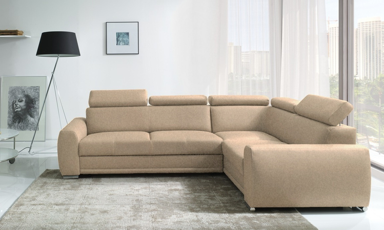Praktická celočalouněná rohová sedačka s rohem napravo. Netradiční a velmi moderní vzhled. Sedačka obsahuje úložný prostor a prostor na příležitostní spaní. Po rozložení je spací plocha 205 × 130 cm. Rozklad je snadný pomocí automatu. Pohodlné sezení zaručují vlnovcové a profilované pružiny spolu s visoceelastickou PUR pěnou. Nožky jsou kovové. Velkou výhodou sedačky jsou 5 polohovatelných opěrek na hlavu pro větší pohodlí. Po zvednutí zádové opěrky je výška sedací soupravy 90 cm. Barevné provedení – látka Element 06. Můžete si vybrat výběr rohu v naší nabídce.CASA 17028
