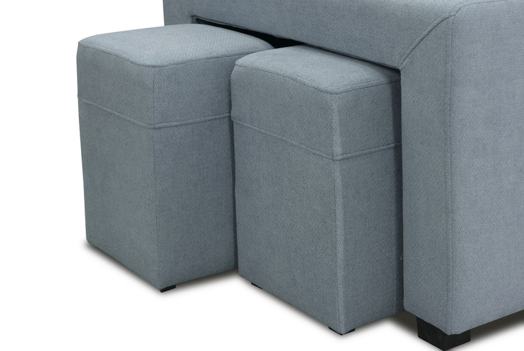 Elegantní celočalouněná rozkládací rohová sedačka ve tvaru L s regulovatelnými opěrkami. Rozkládá se vysunutím přední části pomocí automatu na pístech ( viz. obrázky ). Spací plocha po rozložení je 188 × 115 cm. Sedačka obsahuje také dva taburety schované pod boční opěrkou a praktický úložný... více informací o zboží