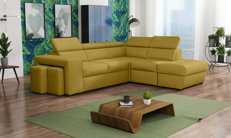 Elegantní celočalouněná rozkládací rohová sedačka ve tvaru L s regulovatelnými opěrkami. Rozkládá se vysunutím přední části pomocí automatu na pístech ( viz. obrázky ). Spací plocha po rozložení je 188 × 115 cm. Sedačka obsahuje také dva taburety schované pod boční opěrkou a praktický úložný... více informací o zboží