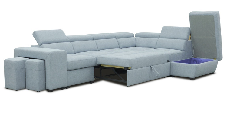 Elegantní celočalouněná rozkládací rohová sedačka ve tvaru L s regulovatelnými opěrkami. Rozkládá se vysunutím přední části pomocí automatu na pístech ( viz. obrázky ). Spací plocha po rozložení je 188 × 115 cm. Sedačka obsahuje také dva taburety schované pod boční opěrkou a praktický úložný prostor. Díky kombinaci vlnovcových a bonelových pružin s HR PUR pěnou zaručuje sedačka komfortní pohodlí. Hloubka sedu je 55 cm, výška sedu 46 cm. Barevné provedení – látka Ocean 29.CASA 41038