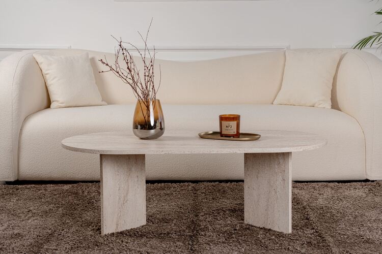 S šířkou 119 cm, výškou 40 cm a hloubkou 60 cm nabízí tento konferenční stolek dostatek prostoru pro vaše nápoje, občerstvení a dekorační předměty. Travertinová barva dodá vašemu prostoru nádech tepla a bohatosti a stane se tak perfektním ústředním bodem vašeho obývacího pokoje.