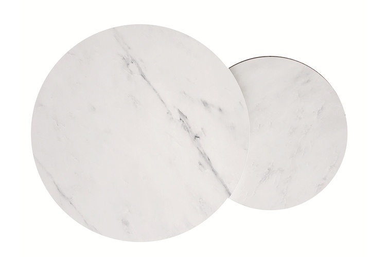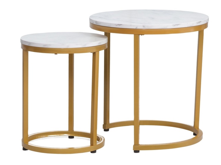 Sada konferenčních stolků 2 ks v moderním stylu. Konstrukce je z kovu zlaté barvy, vrchní deska je z kvalitní LTD desky s efektem mramoru. Tento stylový kousek v jednoduchém designu se bude vyjímat v každém interiéru. Rozměry většího stolku jsou 45×45×48 cm, rozměry menšího 32×32×42 cm.... více informací o zboží