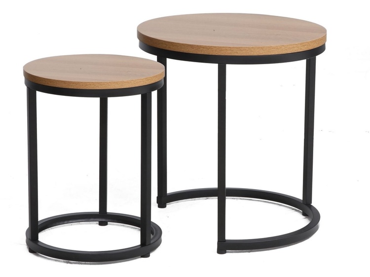 Sada konferenčních stolků 2 ks v moderním stylu. Konstrukce je z kovu matné černé barvy, vrchní deska je z kvalitní LTD desky v barvě dub. Tento stylový kousek v jednoduchém designu se bude vyjímat v každém interiéru. Rozměry většího stolku jsou 45×45×48 cm, rozměry menšího 32×32×42 cm.... více informací o zboží