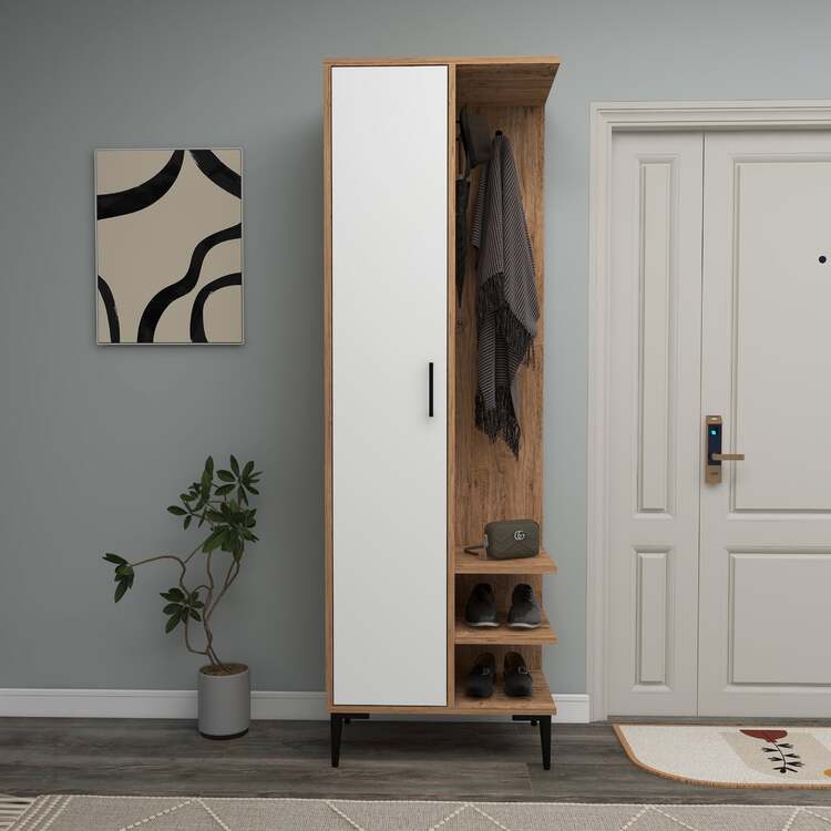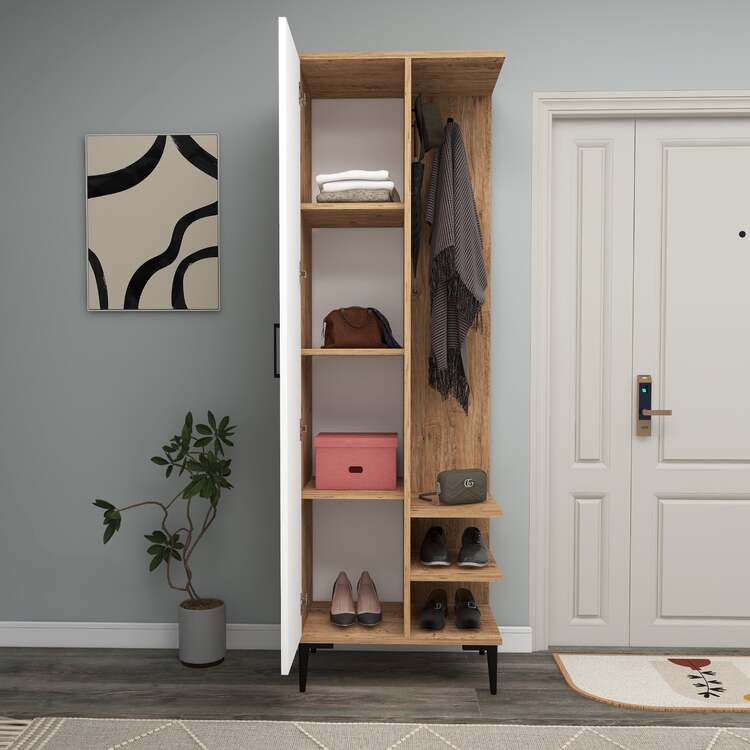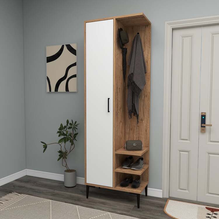 Předsíňová sestava kombinuje moderní design a funkčnost, což z ní činí ideální volbu pro každou domácnost. Tato sestava nabízí dostatek úložného prostoru a chytré uspořádání, které zahrnuje věšákovou stěnu, policovou skříň a praktickou polici. Díky svým kompaktním rozměrům je vhodná i do menších prostorů.