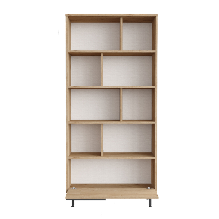 kombinuje praktičnost a moderní styl. Čtyři otevřené police jsou ideální pro vystavení knih nebo dekorací, zatímco plné dvířko poskytuje uzavřený prostor pro uschování dalších předmětů. Díky svému elegantnímu designu a funkčnímu uspořádání se tato knihovna hodí do jakéhokoli obývacího pokoje.