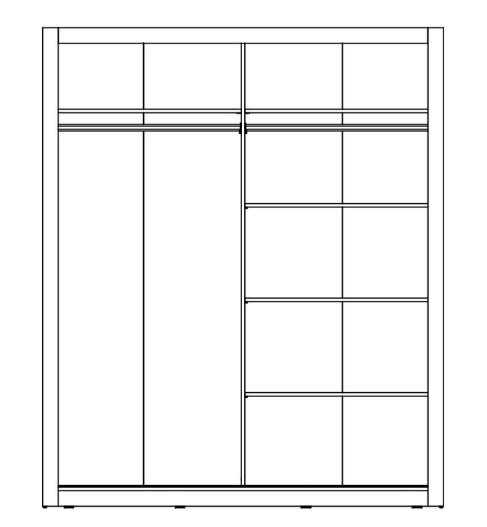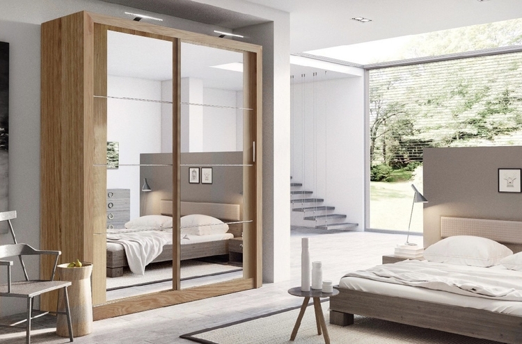 Šatní skříň dvoudveřová s posuvnými dveřmi v moderním provedení. Korpus a dveře jsou z kvalitního LTD v barvě dub shetland. Dveře jsou osazeny zrcadlem. Hrany u skříně jsou ohraničeny ABS páskou. LED osvětlení lze dokoupit. Dodáváme v demontovaném stavu.CASA 73002