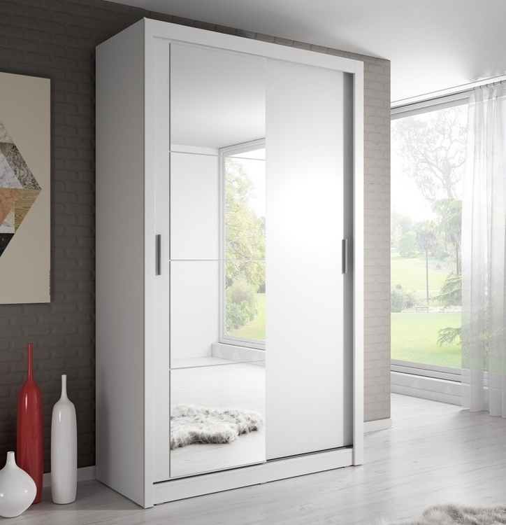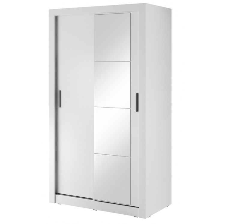 Šatní skříň dvoudveřová s posuvnými dveřmi v moderním provedení. Korpus a dveře jsou z kvalitního LTD v bílé matné barvě. Jedny dveře jsou osazeny zrcadlem. Hrany u skříně jsou ohraničeny ABS páskou. LED osvětlení lze dokoupit. Dodáváme v demontovaném stavu.CASA 73002