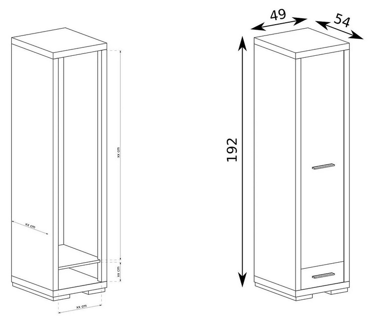 Šatní skříň VEGAS – jednodveřová skříň se zásuvkou