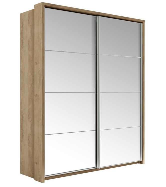 Šatní skříň s posuvnými dveřmi v moderním provedení. Korpus i dveře jsou z kvalitní LTD v barvě dub Shetland. Dveře jsou osazeny zrcadlem. Uspořádání polic viz obrázek. Hrany u skříně jsou ohraničeny ABS páskou. Dodáváme v demontovaném stavu.CASA 73002