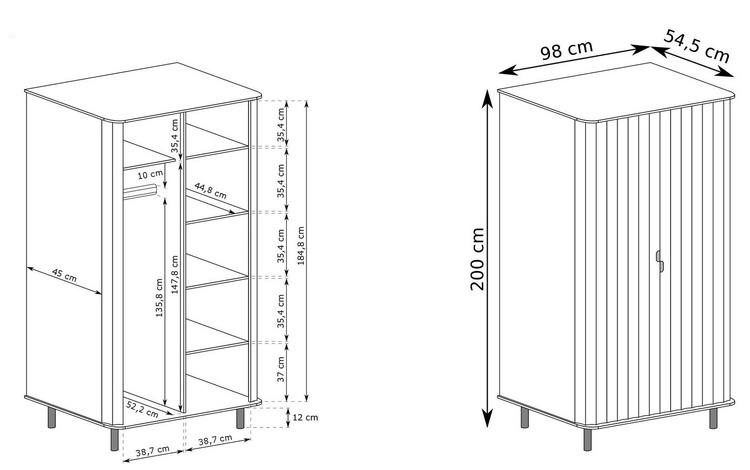 Díky dvou skříňkám s vnitřními policemi a šatní tyčí budete mít