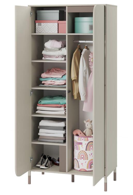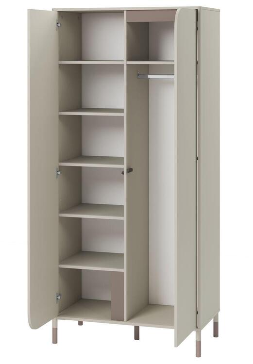 Skříň šatní dvoudveřová. Nábytek pro teenagery, který díky něžnosti hlavně ocení divky, nabízí moderní a praktické řešení do pokojů. Kombinace kašmírové a lanýžové barvy vytváří elegantní a univerzální design. Vyniká zaoblenými čely, asymetrickým stylem a štíhlými nožkami, které dodávají lehký... více informací o zboží