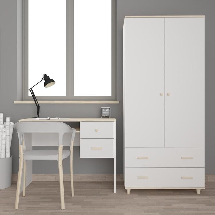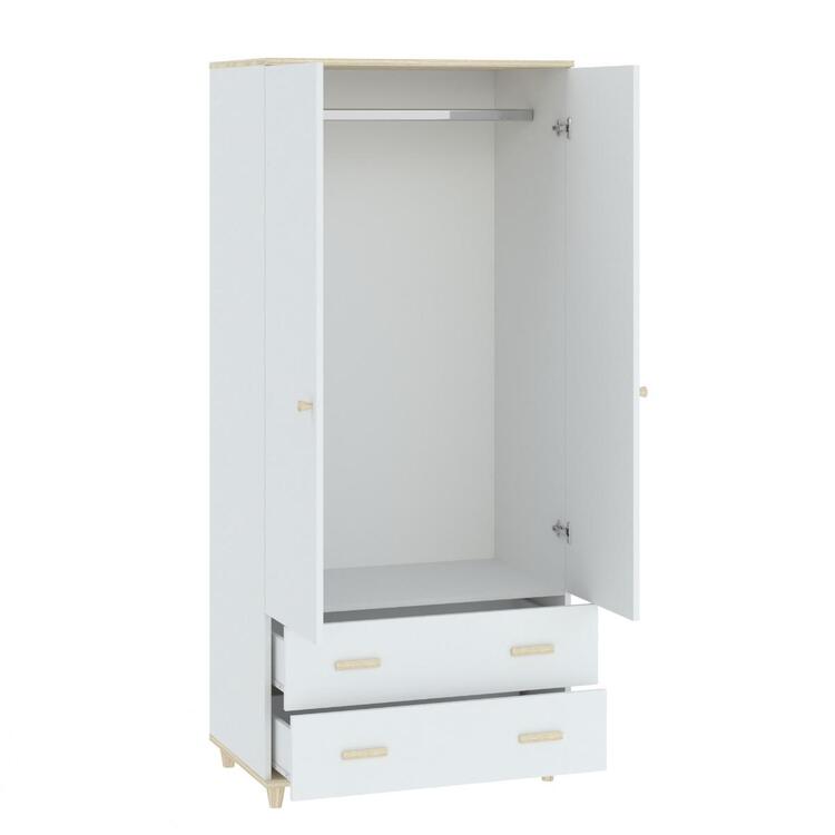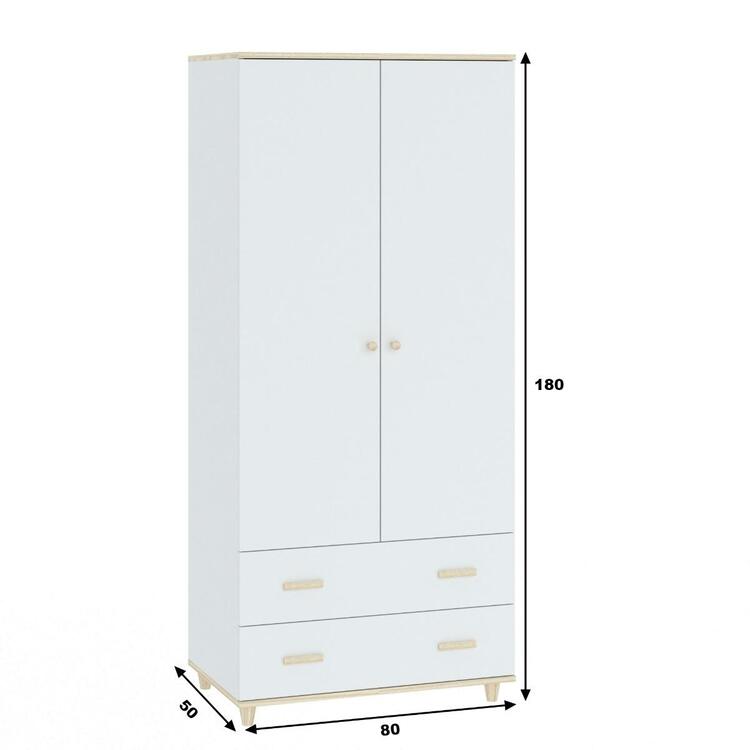 Dvoudveřová šatní skříň se dvěma zásuvkami v moderním stylu, je vyrobena z kvalitní LTD desky v barevném provedení bílá/akácie. Uvnitř skříně je šatní tyč. V naší nabídce naleznete více variant nábytku této řady. Dodáváme v demontovaném stavu.CASA 85032